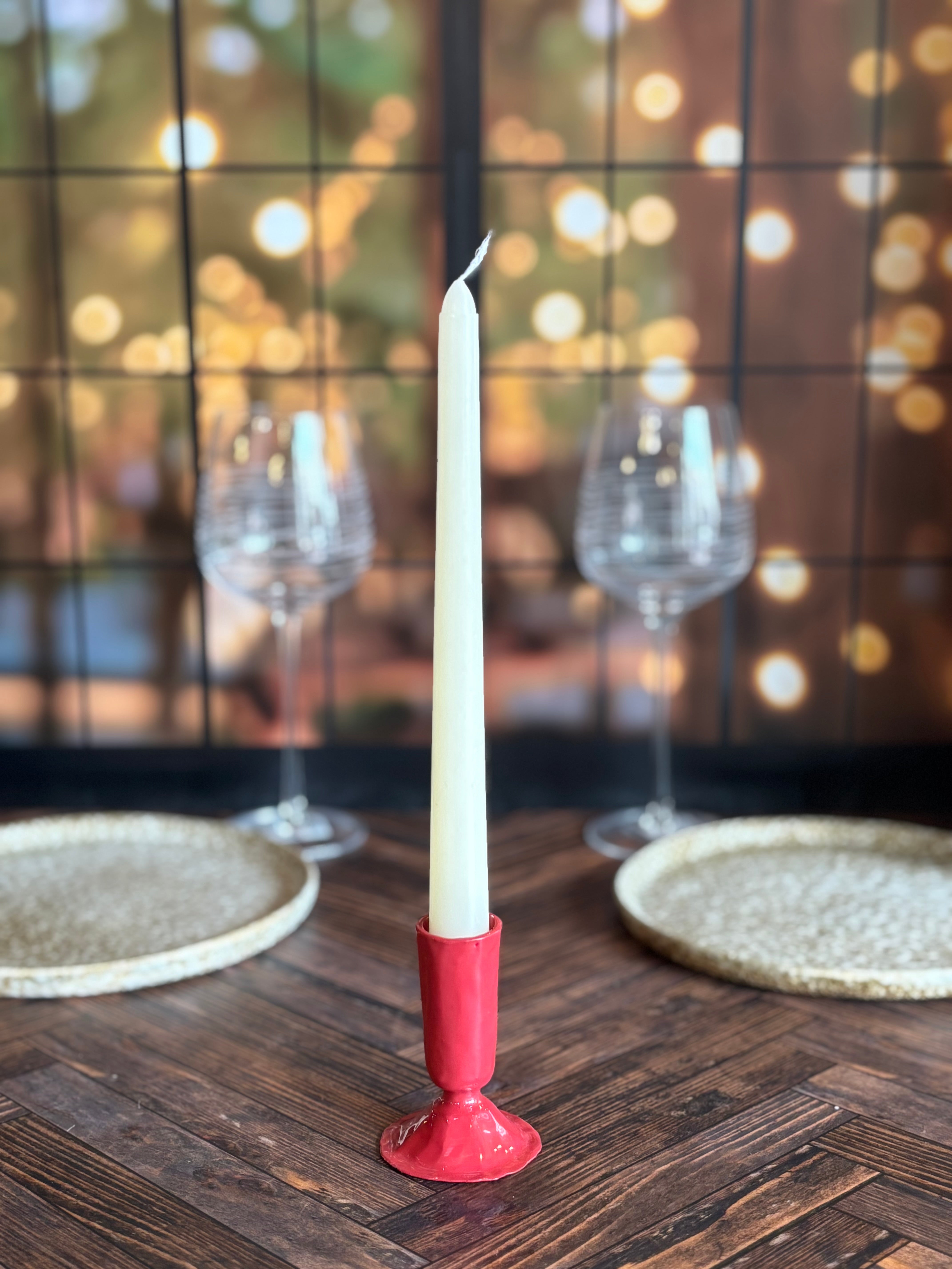Elevate your home decor with our elegant 2-1/4" round by 3" high enameled metal taper holder. Available in 6 vibrant colors, it adds a touch of modern charm to any room. Durable and sleek, it holds your favorite taper candles for a warm and inviting atmosphere. Choose your color and create the perfect and unique ambiance.