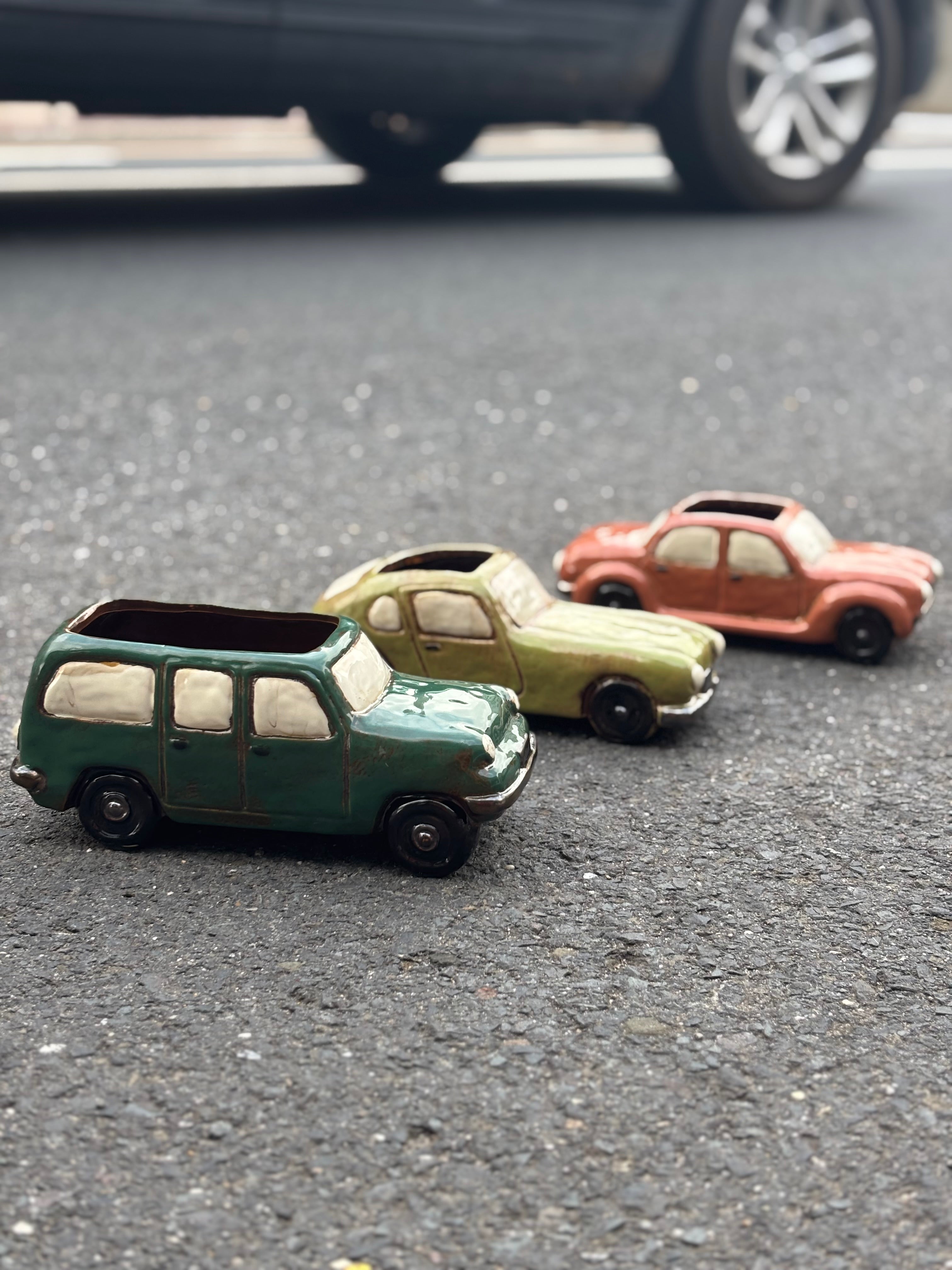 Bring a touch of whimsy to your indoor garden with these vintage-inspired ceramic planters shaped like colorful cars. Perfect for brightening up any room, they add playful charm while providing a cozy home for your favorite plants. Let your greenery ride in style!