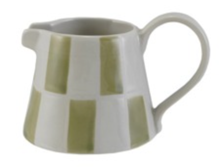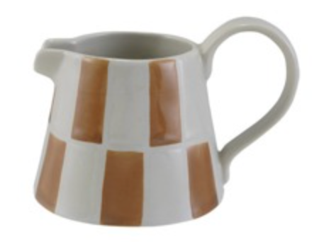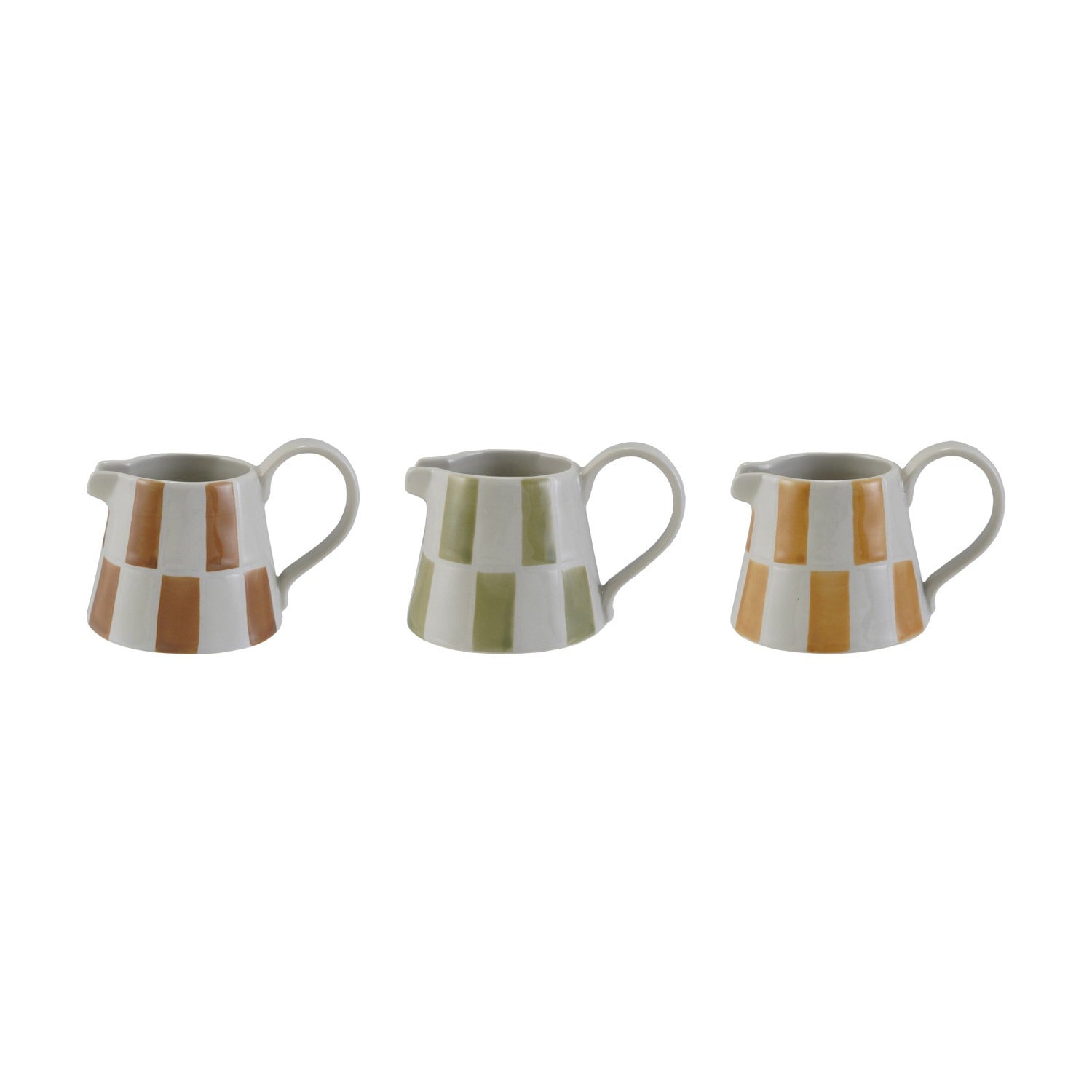 Add a charming touch to your table with this whimsical stoneware creamer, adorned with a classic checked pattern. Sized just right at 4-1/2" x 3-1/4" x 3", it’s perfect for serving cream or milk with your favorite coffee or tea. Available in three delightful colors, this durable creamer brings both style and function to any kitchen or dining room, making every meal feel a little more special.