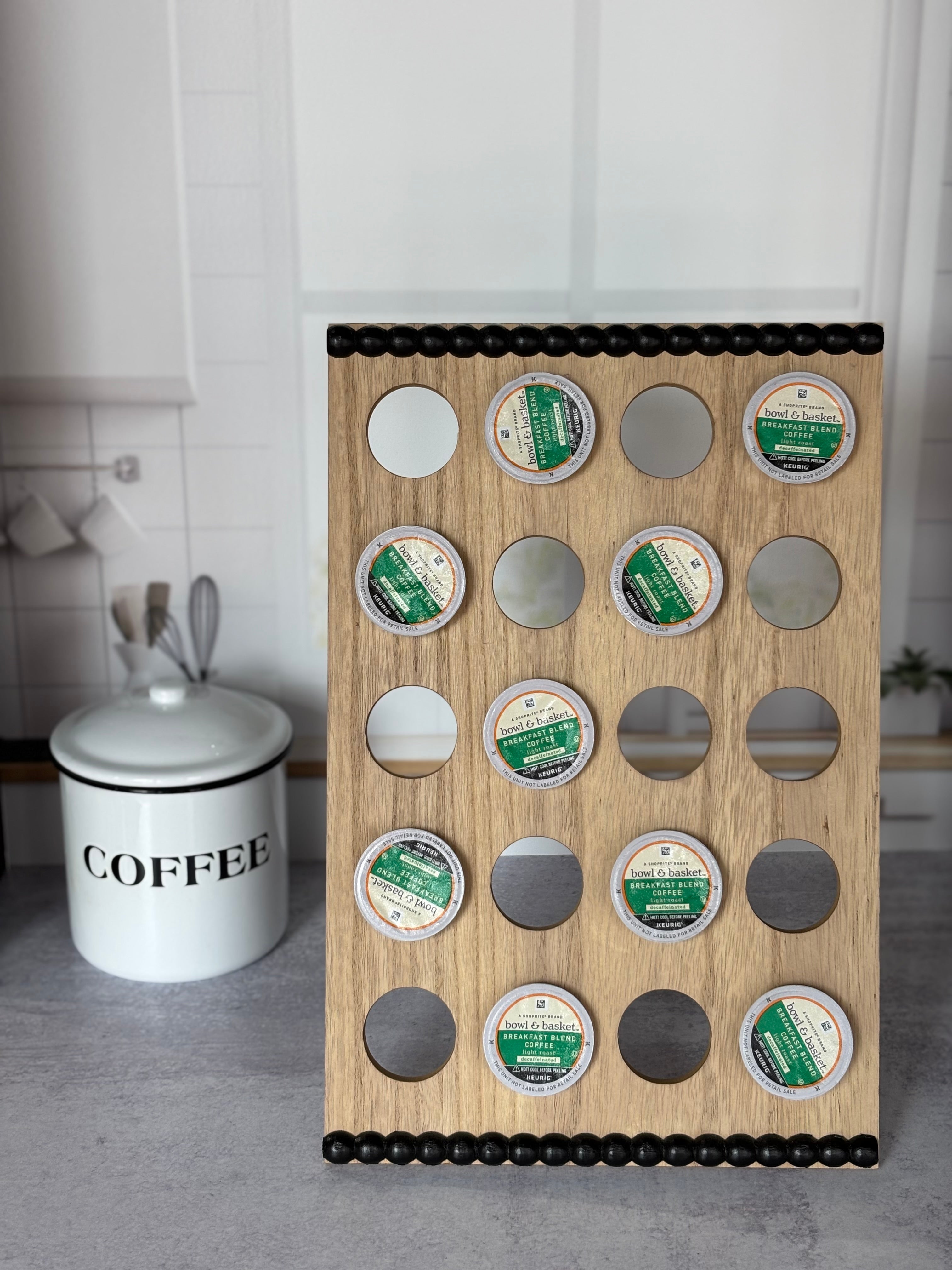 Display your K-cup pods in style with this whimsical wooden coffee pod easel. Its charming design keeps your favorite coffee pods neatly organized and easily accessible, adding a fun and rustic flair to your countertop or coffee nook.