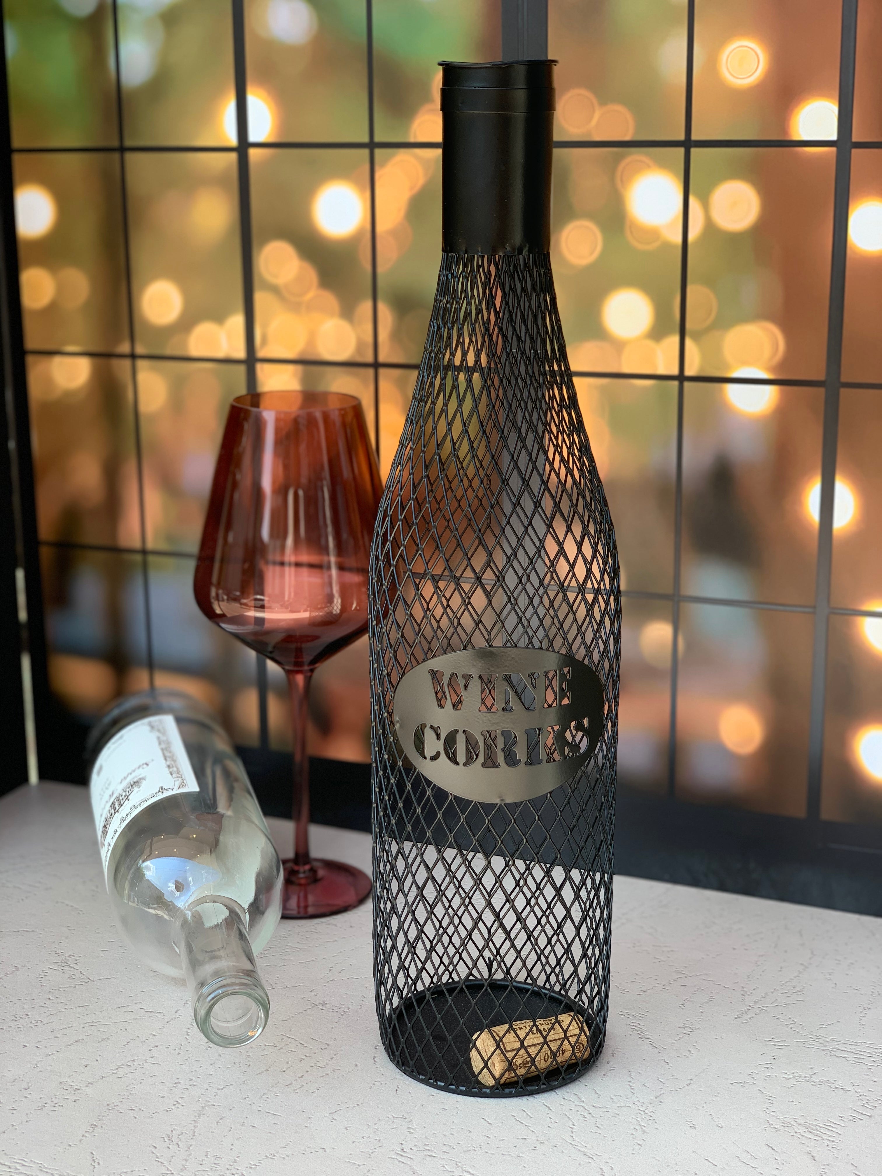 Display your love for wine with this modern cork holder. Its sleek metal design and wine bottle shape add a touch of fun to any space. Holds approximately 60 corks, showcasing your wine journey while keeping your home stylishly organized. (Note: corks not included)