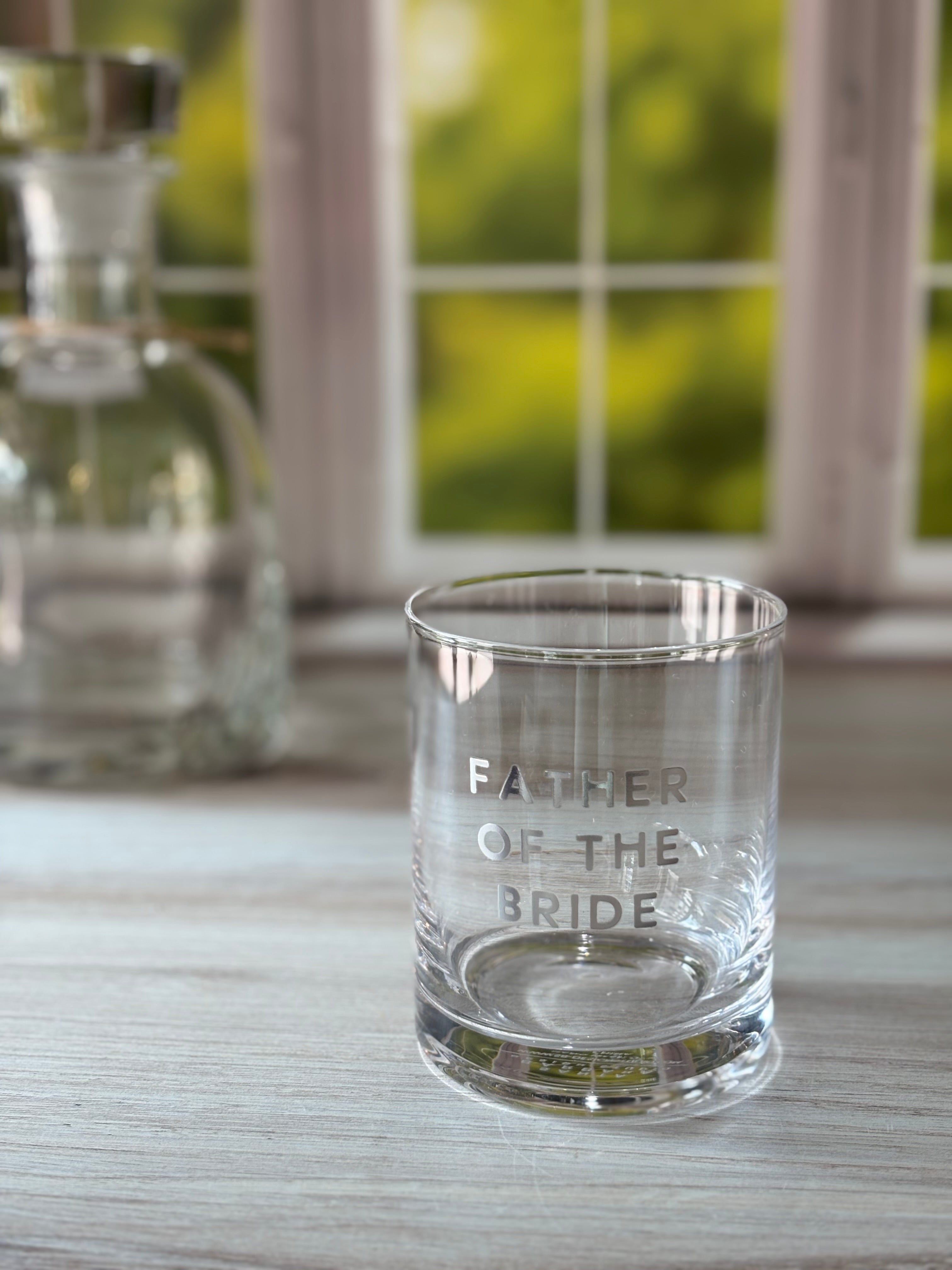 Celebrate the 'Father of the Bride' with our DOF Rocks Glasses. With a stylish silver foil design, these glasses are perfect for enjoying whiskey, brandy, or other spirits on the rocks. Packaged in a decorative tube, it's the ideal gift for his daughter's special day.