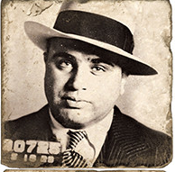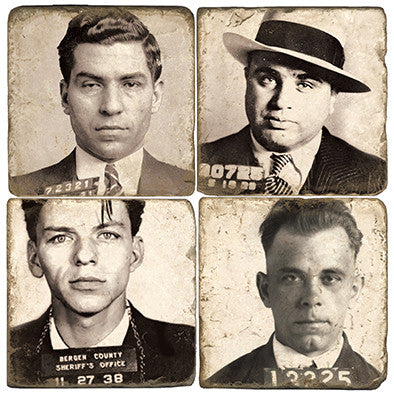 Get a glimpse of infamous underworld figures with coasters featuring mug shots. This handcrafted Italian marble coaster features mugshots of notorious gangsters, adding a touch of chic to your decor. The cork back provides a sturdy grip while protecting your furniture. Made with care in the USA.