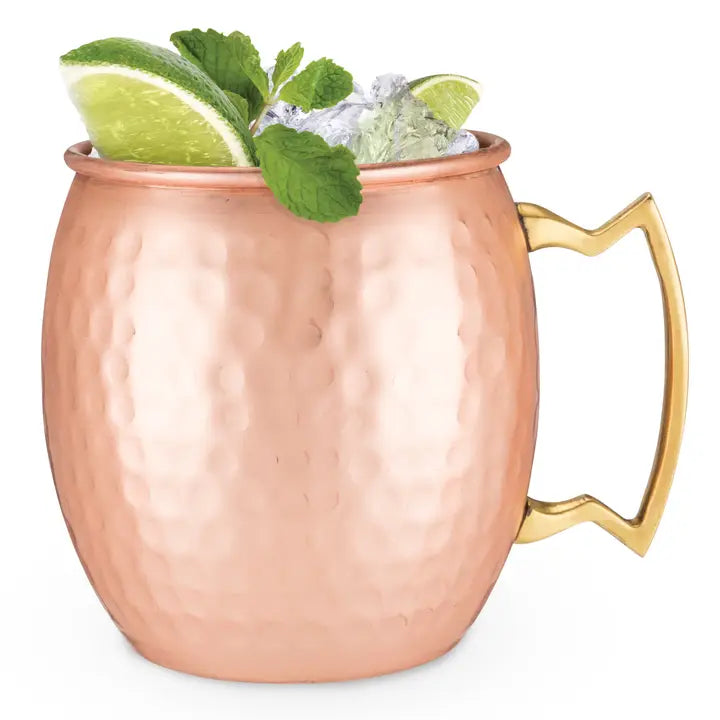 Infuse your next gathering with a vibe using our 16oz Moscow mule mug. Handcrafted from hammered copper, this mug boasts a burnished gleam and solid brass handle for a touch of elegance. Enjoy a refreshing mix of vodka, ginger, lime, and mint in this iconic vessel.