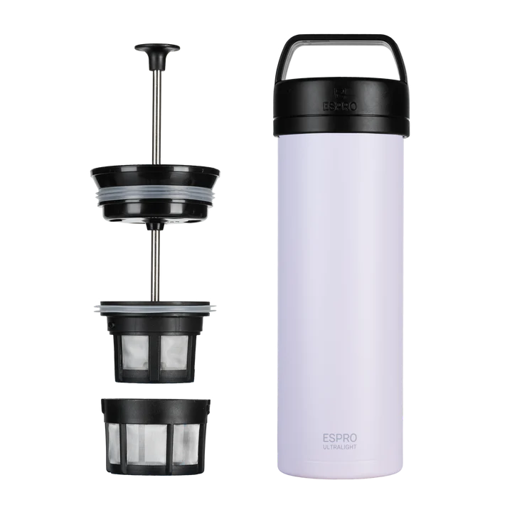 Effortlessly enjoy a clean, leak-proof cup of coffee on-the-go with the Ultralight Press. Its lightweight design and looped handle make it perfect for the adventurer. With the patented AirLock™ and dual Micro-Filter system, your brew will have a consistent taste every time. Plus, the advanced insulation keeps your coffee at the perfect temperature for hours.