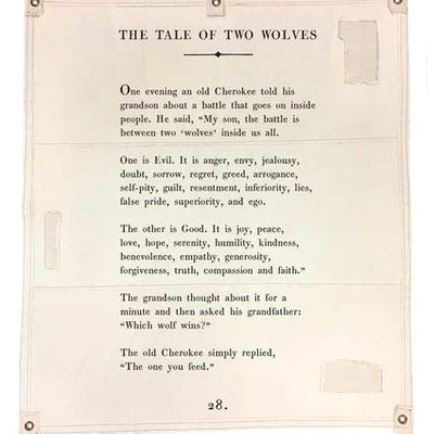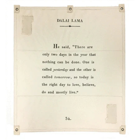 Transform your space into a bohemian paradise with our 46" x 57" Wall Canvas. Made of 100% cotton, pre-washed for a vintage look, and enhanced with hand-stitched patches and frayed edges. The quotes are screen printed by hand with stitching around the sides.