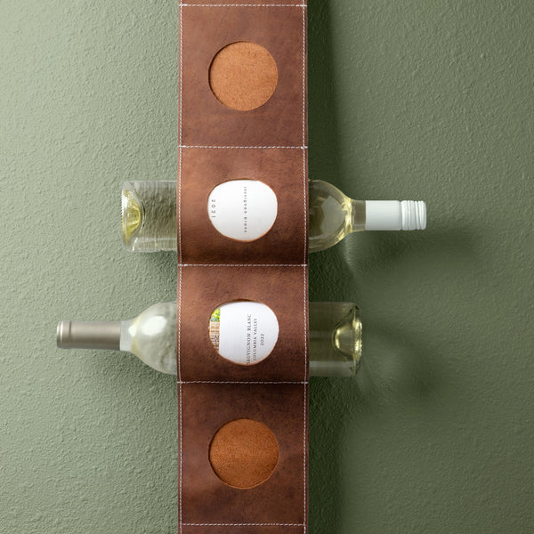 Add a touch of whimsy to your home décor with our ethically sourced, upcycled leather wine holder. Crafted with unique folklore-inspired details, it's the perfect conversation starter at your next gathering. Show off your unique style while keeping your wine within reach.