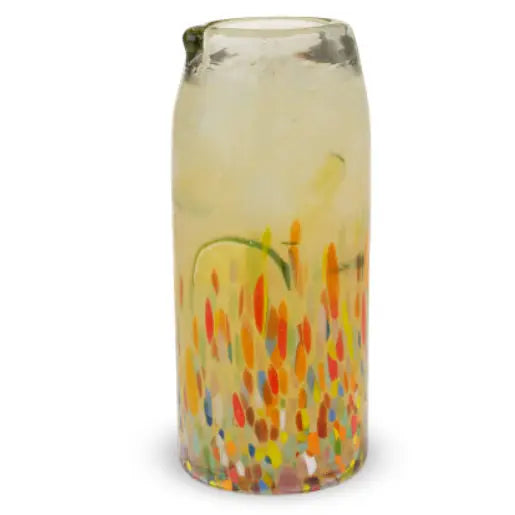 Elevate your table with the Segundo Glass Pitcher, a whimsical blend of artistry and eco-consciousness. Handblown from recycled glass, this 42oz beauty captures light and imagination alike, making every pour a delightful experience. Perfect for serving your favorite drinks with a touch of charm and sustainability.