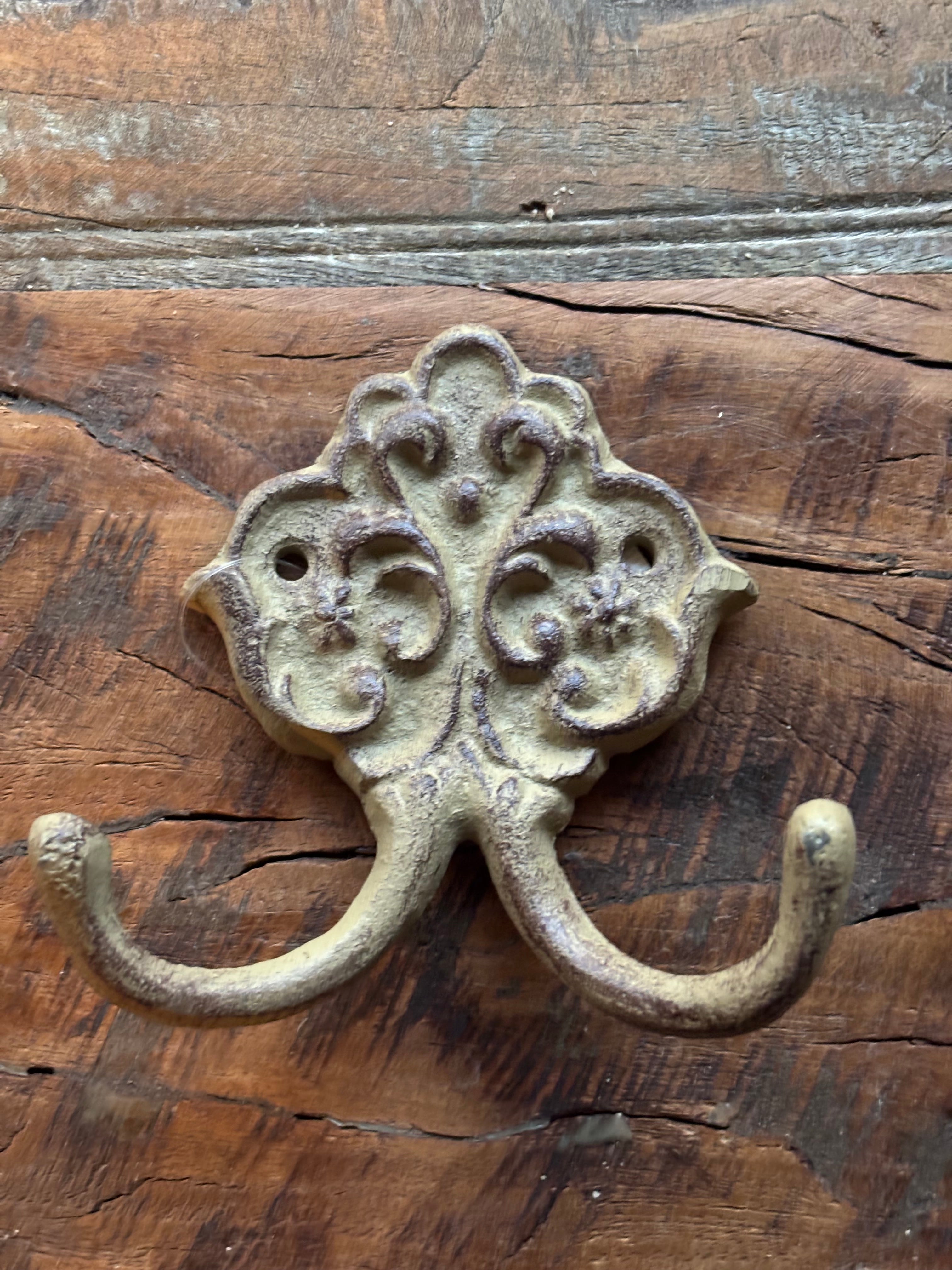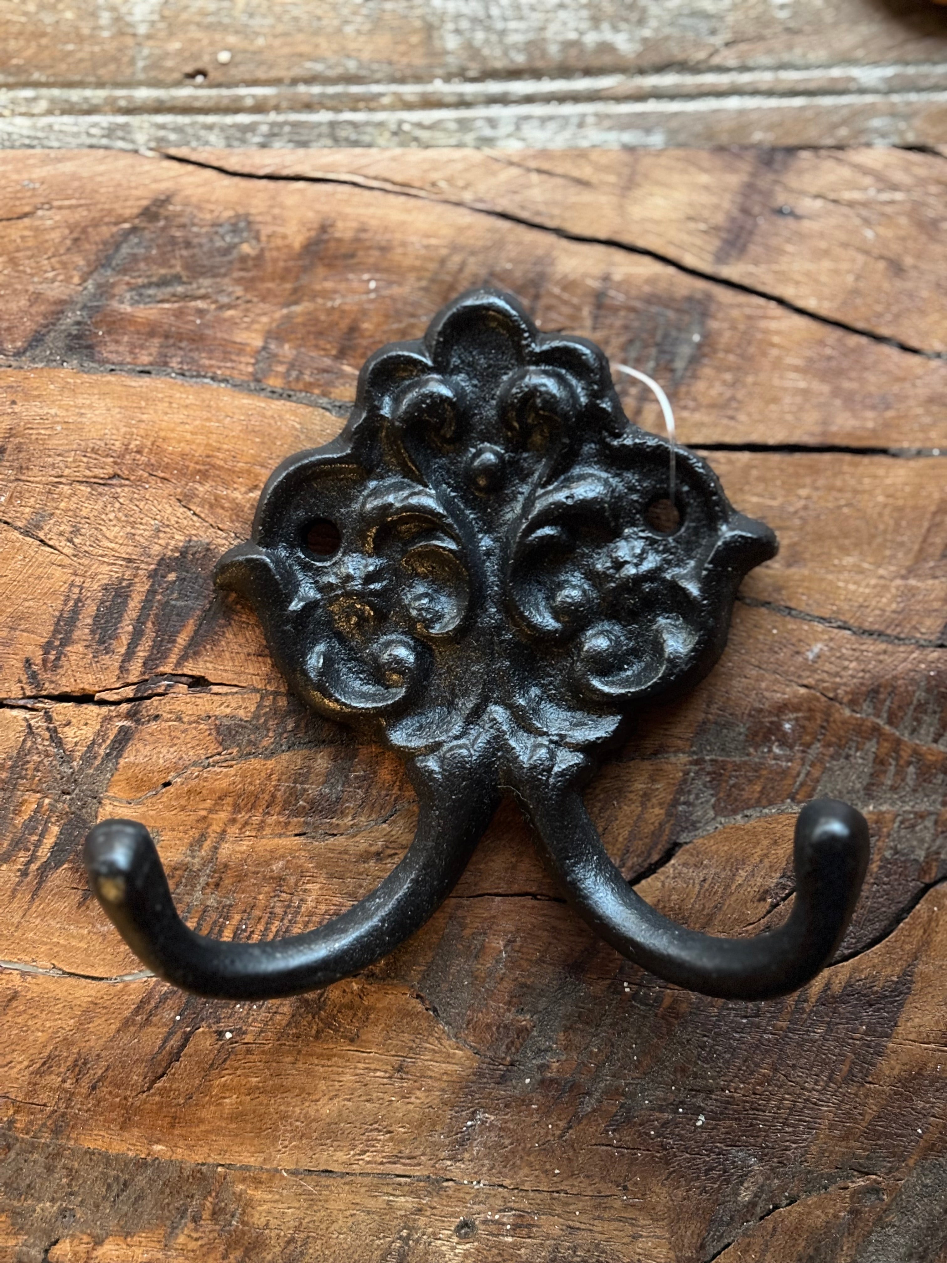 Update your bathroom with our vintage look cast iron Guest Towel Hook. Made with durable antique black or gold hardware, it adds a rustic touch and can be used in various ways.