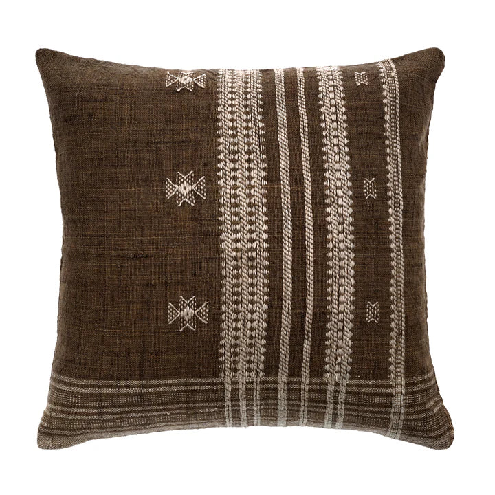 Add some unique flair to your home decor with our Handloom Pillow. Hand-loomed using ancient kutch weaving techniques, each pillow features unique geometric patterns. Made from wool with a premium feather down filler for ultimate comfort. Experience the beauty and history of traditional art with this espresso brown toss pillow.