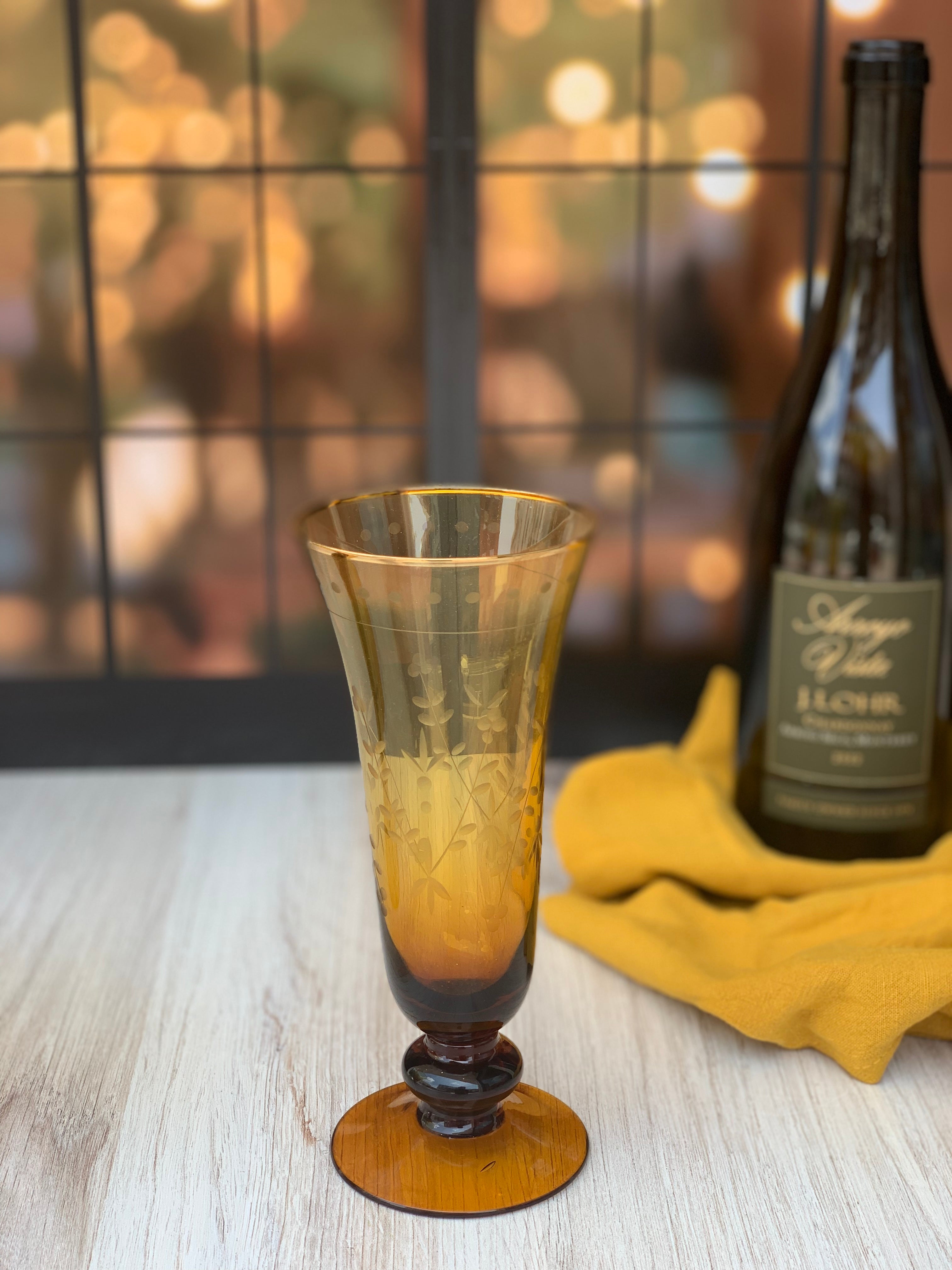Introducing the Etched Flute, a charming and elegant addition to your kitchen and barware décor. Its delicate etched design, adorned with a gold finish, exudes whimsy and sophistication.
