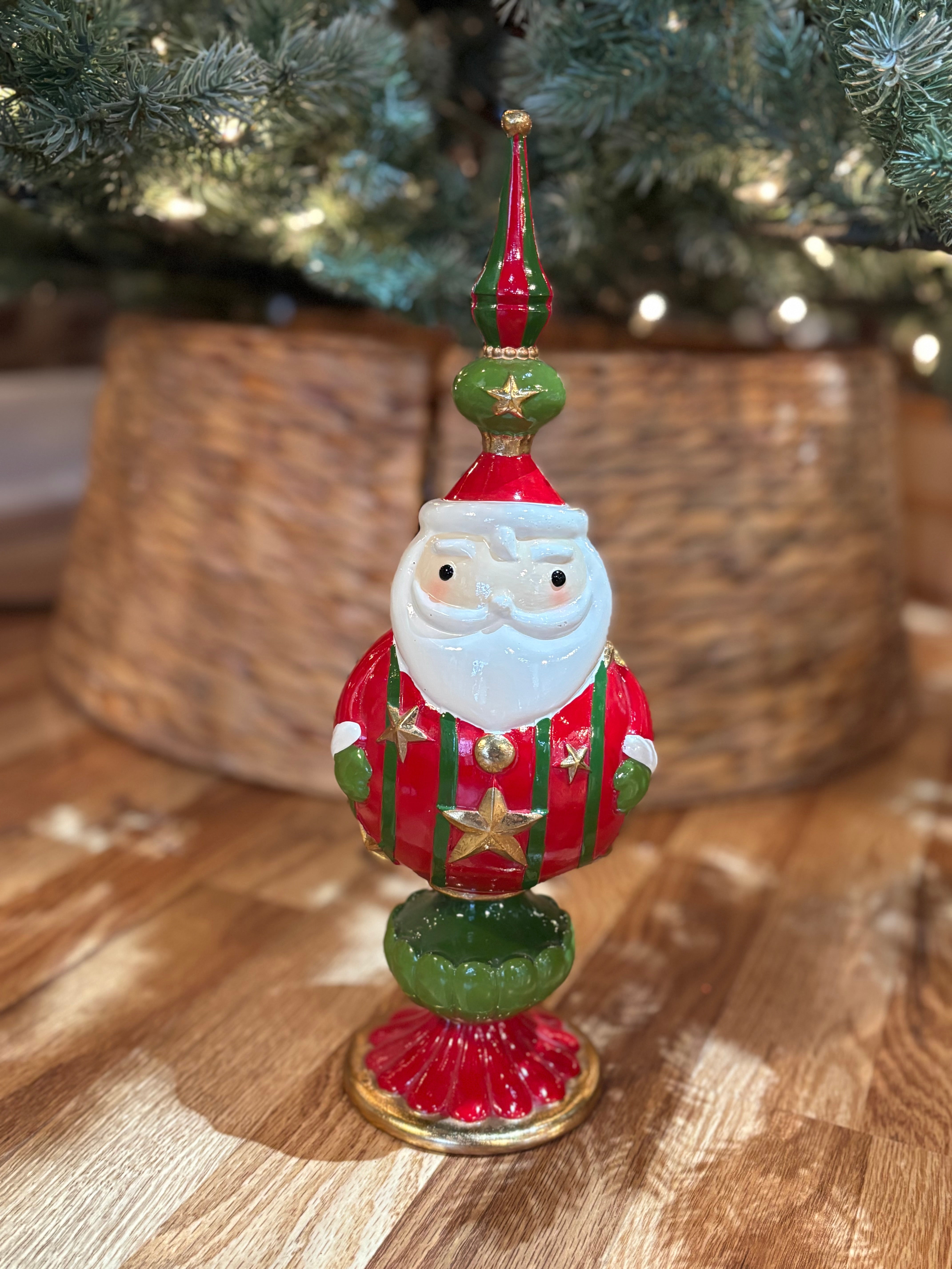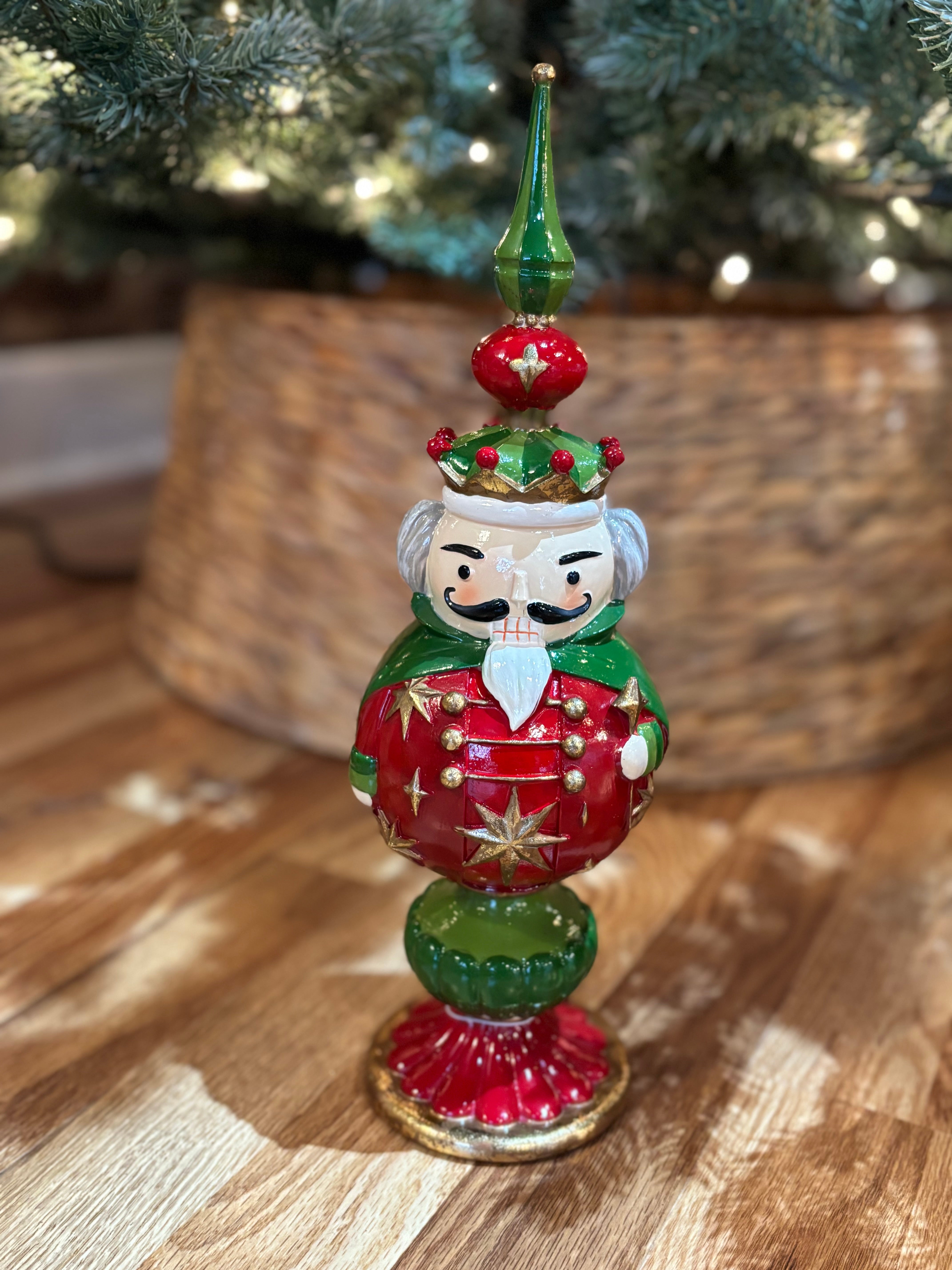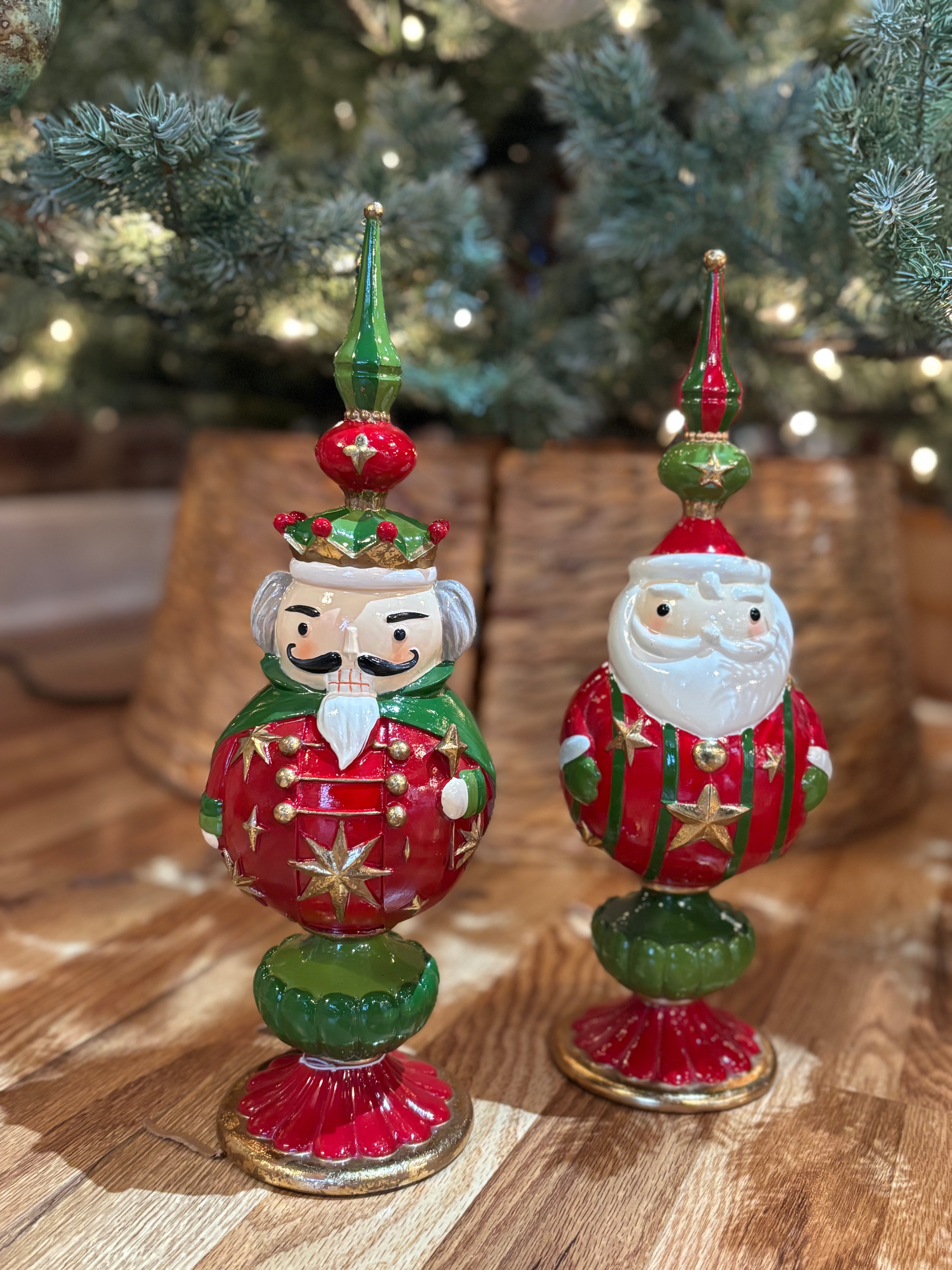 Add a festive touch to your Christmas decor with our 13" Santa and Nutcracker Finial ornament. Made of durable materials, this beautifully crafted finial features your choice of jolly Santa Claus and traditional nutcracker design. Whether on your table or mantel, it's sure to bring joy and cheer during the holiday season.