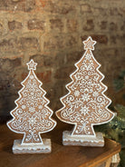 Introducing our Ginger Bread Tree decor piece made from durable resin. This intricate tree comes in two sizes for versatility, with the large measuring 2.5"L x 7.25"W x 13"H and the small measuring 5.5"L x 2.25"W x 10.5"H. Add a touch of whimsy to your space with this unique and eye-catching piece.