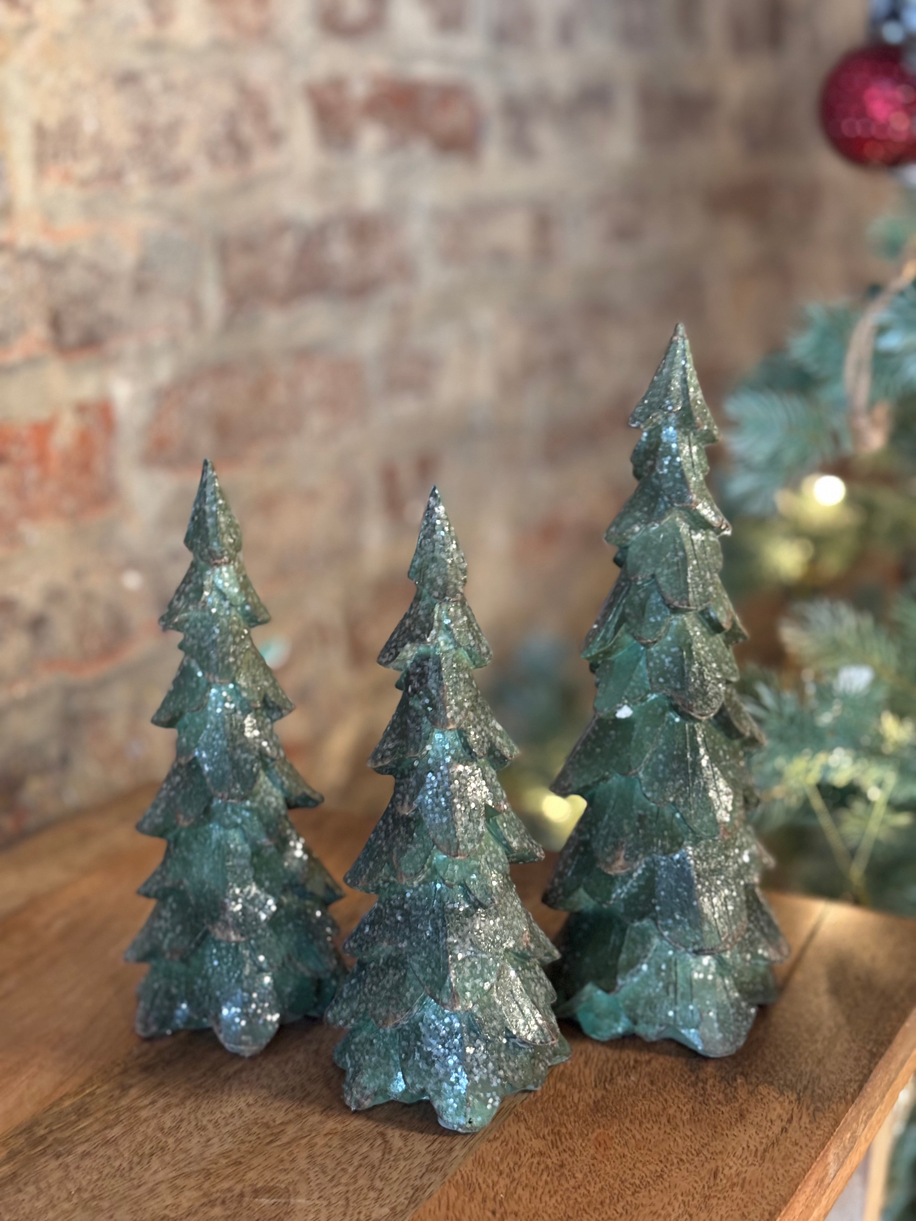 Infuse your space with Holiday charm with these Green Carved Trees. Crafted from durable resin, these intricately designed pieces come in your size choice of 10.5", 8.75", and 7" in height, adding a touch of nature to any room. Perfect for creating a cozy and earthy vibe.
