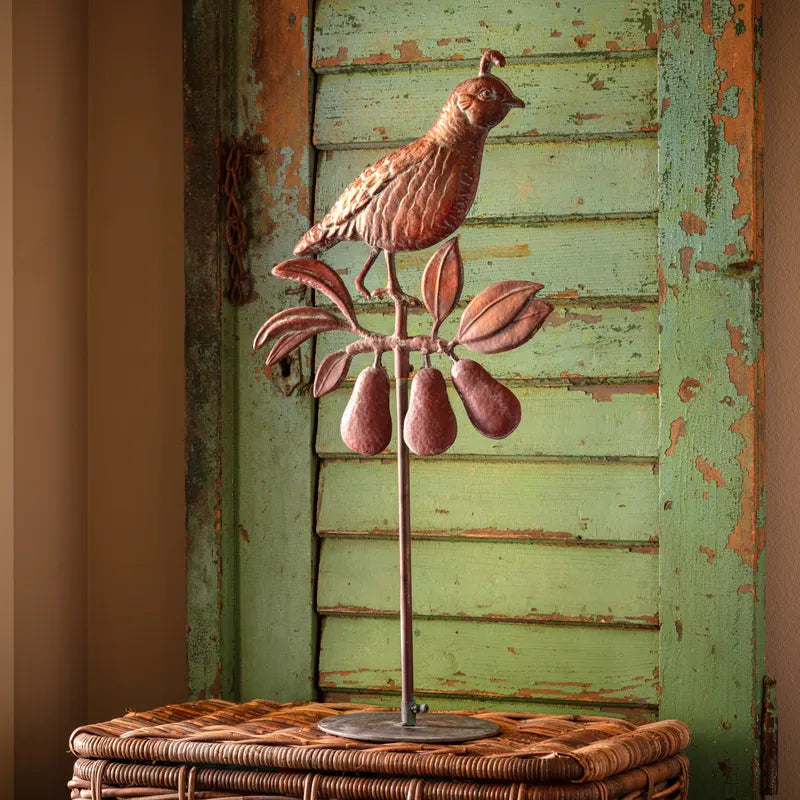Add a unique touch to your Christmas tree with our Tree Topper w. Stand. With a beautiful verdigris finish, this metal topper comes in your choice of a star, angel, or partridge in a pear tree design. Elevate your holiday decor with this vintage-inspired piece.
