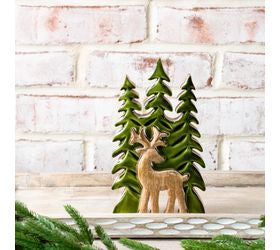 Add a touch of holiday charm to your space with these unique Trees w. Deer! Crafted from wood, these 8" trees feature a cut-out deer design that adds a rustic and natural feel to any room. Perfect for nature lovers and those seeking a cozy, whimsical vibe in their home.
