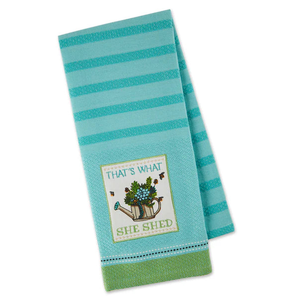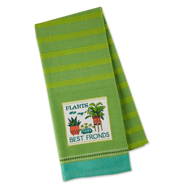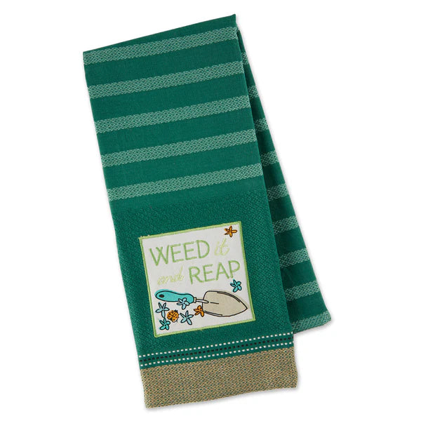 This dish towel is a stylish addition to any khome. Made of 100% cotton, it features an applique patch with a charming garden design. With easy care instructions for machine washing, gentle cycle, and low tumble dry, this towel is both functional and decorative.