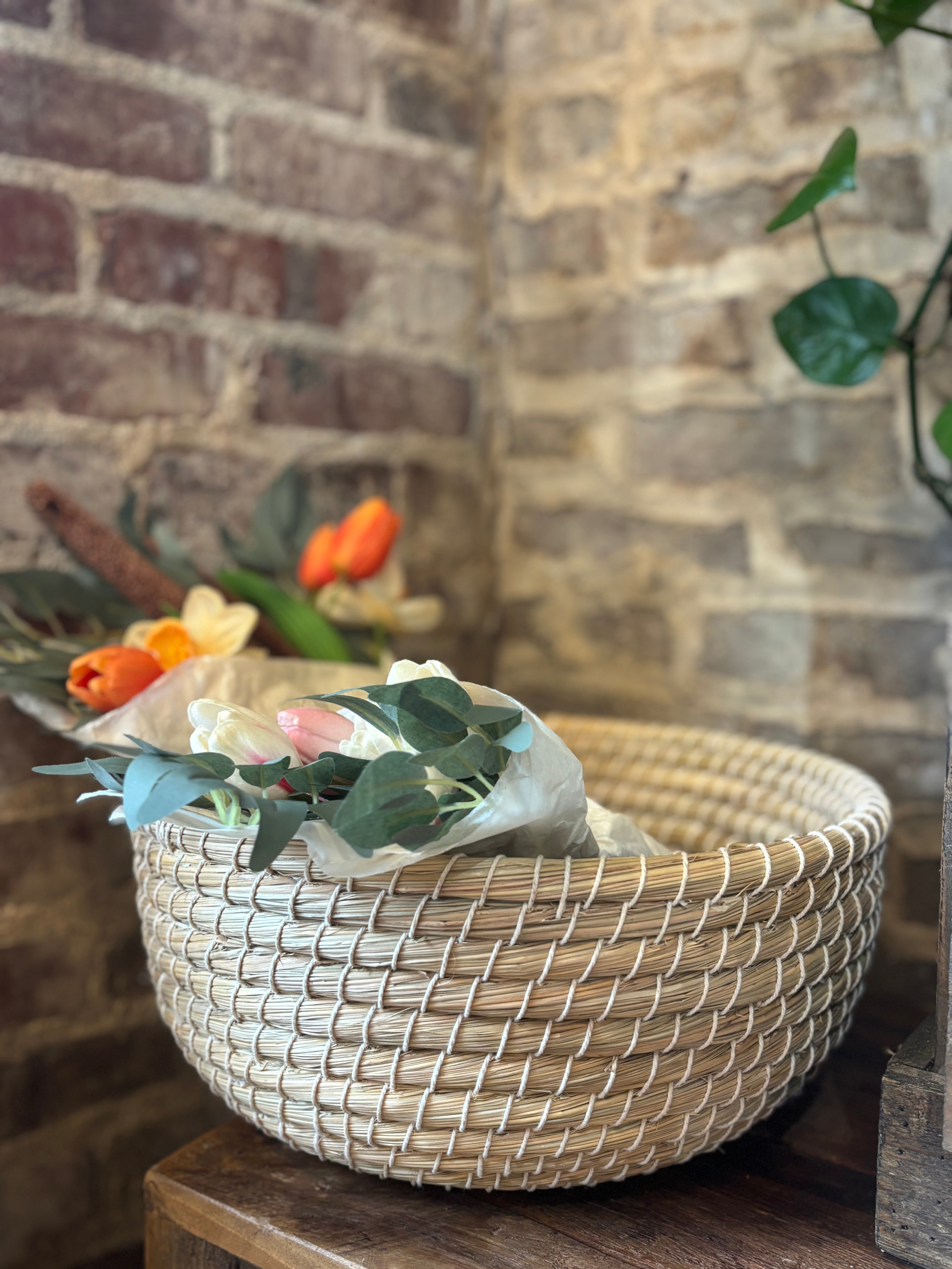 Elevate your space with the Kaisa Basket Bowl. Handcrafted in Bangladesh from kaisa grass, this unqiue basket brings both form and function to your home. Use it to corral your keys, office supplies, or any other items in a beautifully traditional way. Simply wipe clean for easy care.