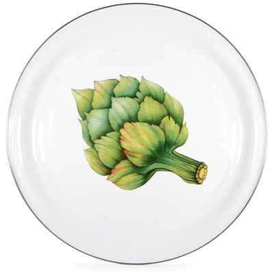 Add a vibrant touch to your gatherings with our Large Enamel Tray. Its 20" diameter make it perfect for serving snacks or displaying decor. The hardened enamel surface is both oven and stovetop safe, and the tray is dishwasher safe and non-toxic for added convenience.