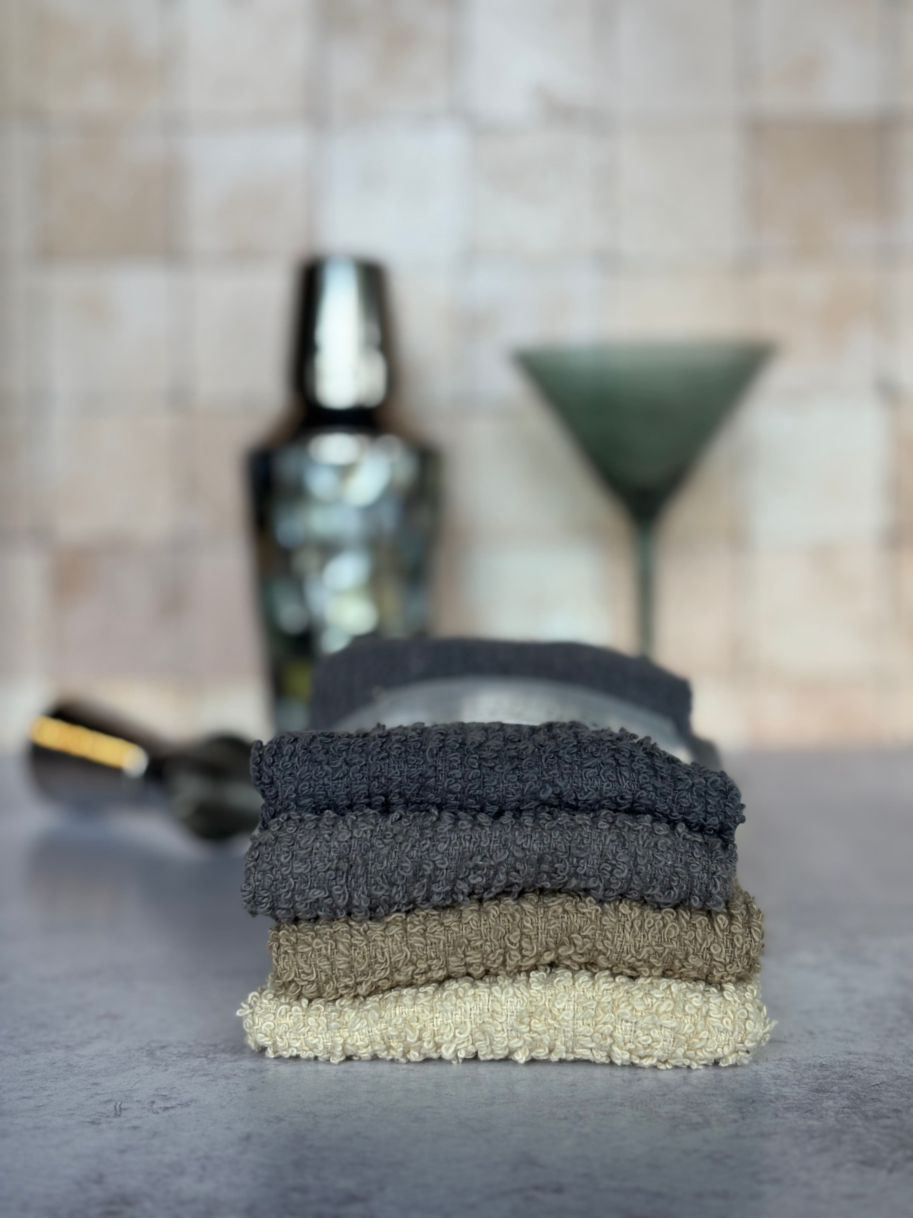 Introducing our Neutral Bar Towels Set of 4, perfect for any style kitchen! Made of 100% cotton, each towel measures 16 x 19" and is machine washable for everyday use. Keep your kitchen clean and stylish with these bar mop towels.