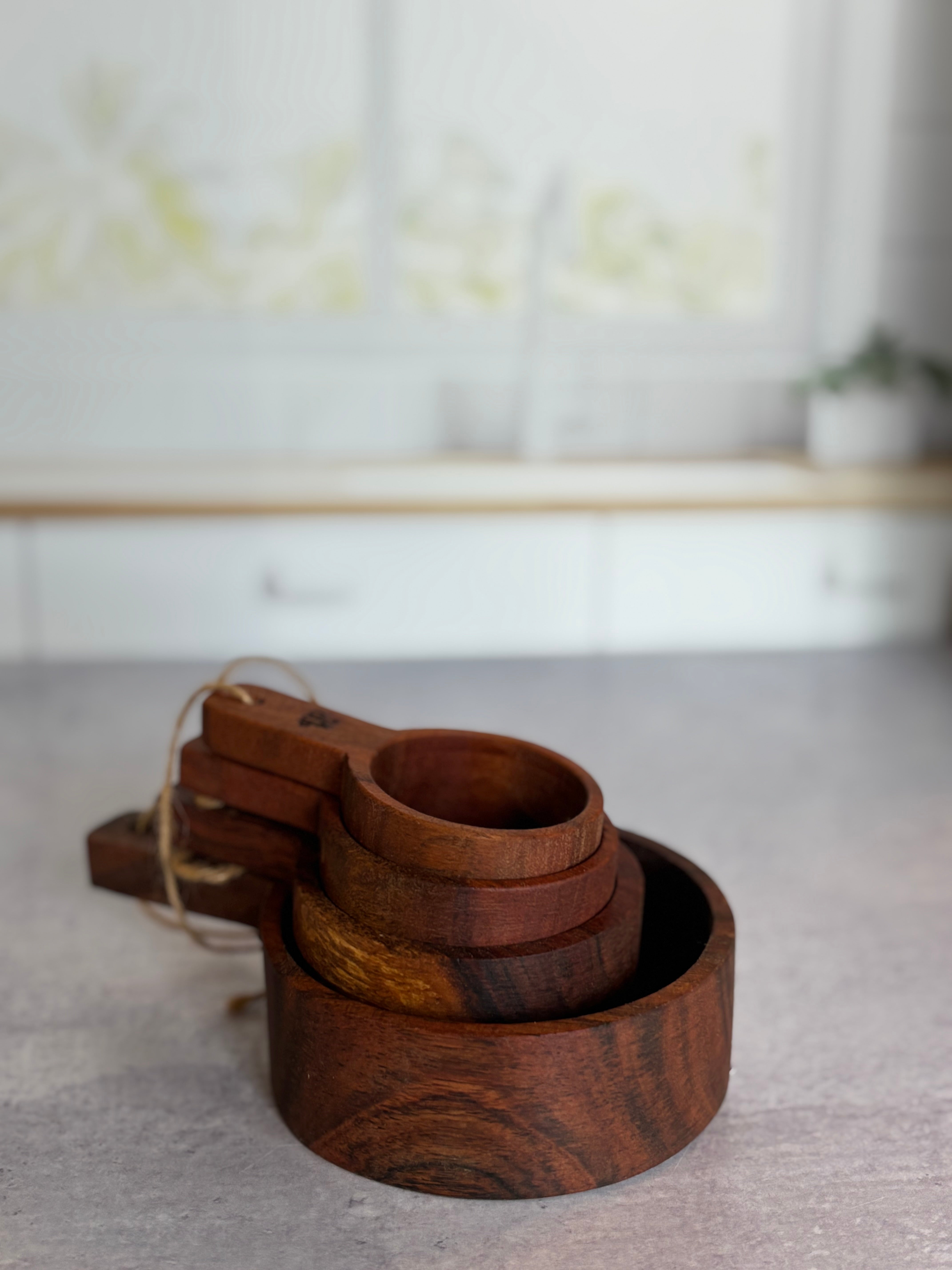 Add a touch of farmhouse charm to your kitchen with our hand-crafted Wood Measuring Cup set. Made in the tradition of the old-world, this set of four cups is both simple and naturally beautiful. Perfect for precise measurements with a touch of rustic elegance.