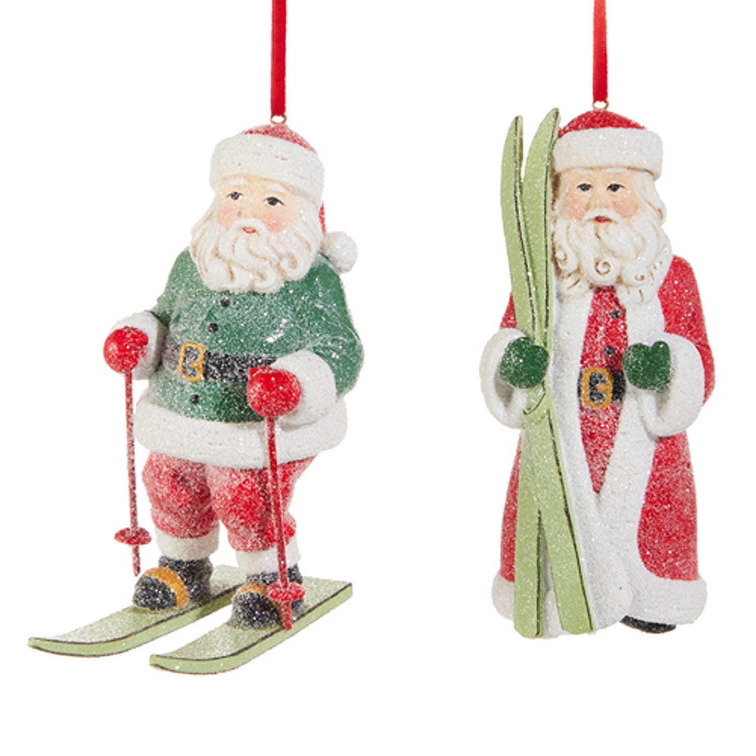 Add some festive fun to your Christmas tree with this 4.75" Skiing Santa ornament. Featuring intricate details and vibrant colors, this charming ornament brings whimsy and joy to your holiday decor. Complete with skis and poles, Santa is ready to hit the slopes in his traditional red suit.