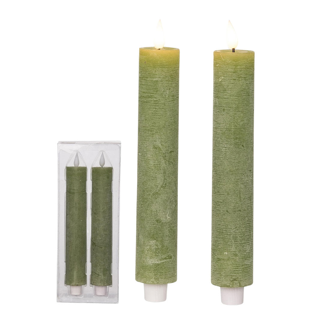 Create a cozy and inviting atmosphere with this set of 2 LED wax solid taper candles. The warm flickering light mimics real wax candles, while the LED technology adds convenience and safety. Perfect for any occasion or room in your home, these candles add a touch of elegance to your decor.