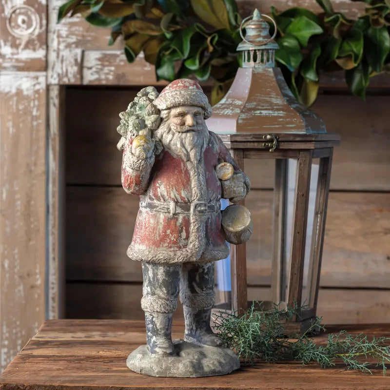 Unwrap the magic of the holiday season with Santa Bearing Gifts. This unique piece stands tall at 18" and boasts a vintage finish, adding a touch of charm to any room. Give the gift of whimsy and delight with this festive decoration.