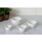 Add a touch of charm to your kitchen with these white ceramic measuring cups. Crafted from durable dolomite, these cups feature four sizes (1 Cup, 1/2 Cup, 1/3 Cup, 1/4 Cup) for all your cooking needs. Hand wash only, not microwave safe, but food safe for easy, stylish measuring.